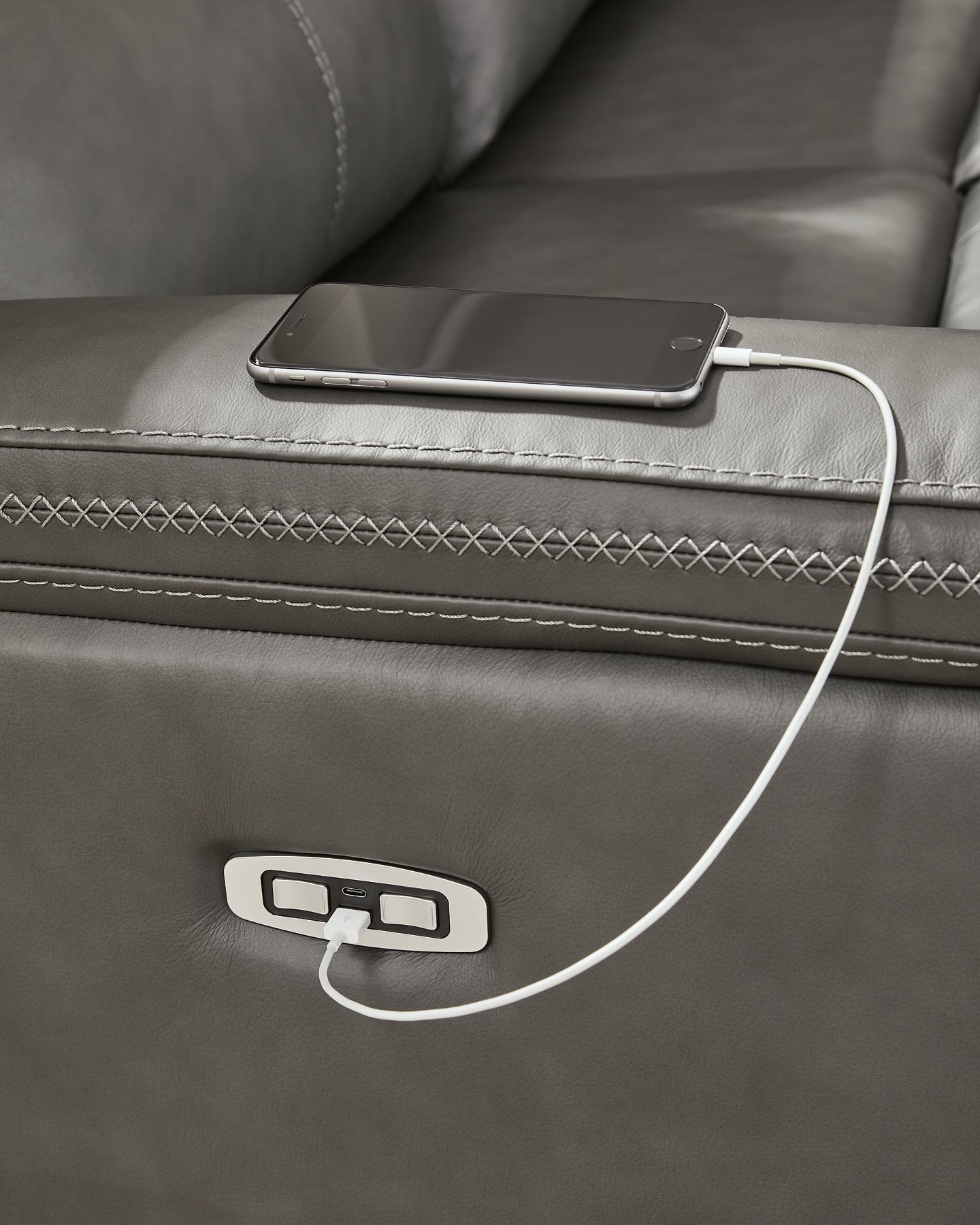 | Details | Includes 6 pieces: left-arm facing power recliner, armless chair, power armless recliner, console with storage, wedge and right-arm facing power recliner, One-touch power control with adjustable positions, Easy View™ adjustable headrest and zero-draw USB-A and USB-C ports, Zero-draw technology only consumes power when the USB receptacle is in use, Zero-gravity mechanism allows optimum reclining comfort with infinite reclining positions at the touch of a button, Corner-blocked frame with metal reinforced seat; attached back and seat cushions, High-quality foam cushions wrapped in poly fiber, 100% top grain leather covers inside areas such as the back, seat and arm cushions; skillfully matched faux leather covers the remaining areas, Due to its natural origin, real leather can show individual characteristics such as healed scars, growth marks, grain variation and shade variation, Natural variations make each hide unique and do not detract from the wearing qualities of leather, Console with 2 cup holders and hidden storage, Zero wall recliner design requires minimal space between wall and chair back, Zero gap mechanism maintains consistent lower back and lumbar support throughout every stage of reclining for the ultimate relaxation experience, Power cord included; UL Listed | |