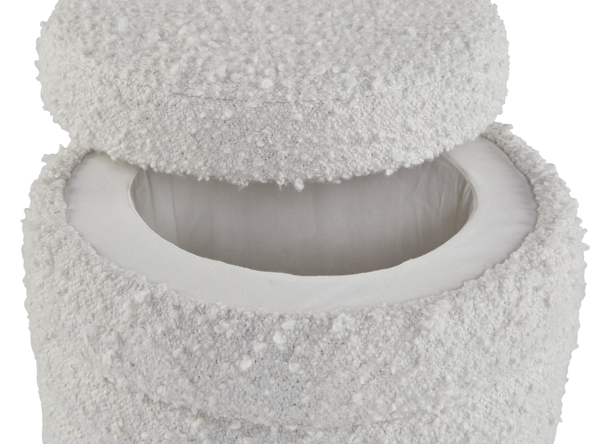 | Detalles | Tapizado de poliéster bouclé, parte superior extraíble para almacenamiento. | |