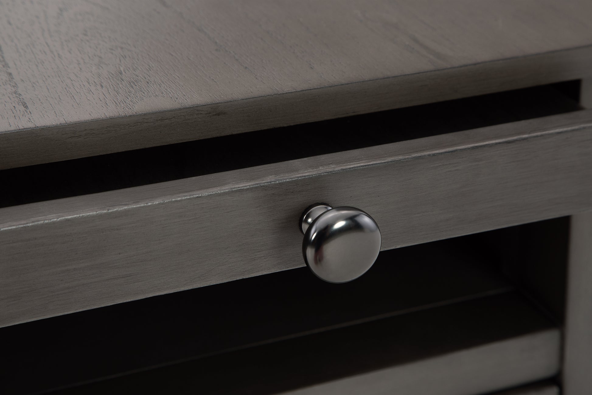 | Detalles | Fabricada con madera maciza, chapa de madera y sustrato de MDF, acabado en tono de madera gris, la mesa cuenta con gabinete de almacenamiento, estante de cubículo abierto y bandeja extraíble, fuente de alimentación de 110 V con dos puertos de carga USB, cable de alimentación incluido; listado por UL, debido al uso de materiales naturales, pueden ocurrir algunas variaciones, requiere ensamblaje | |