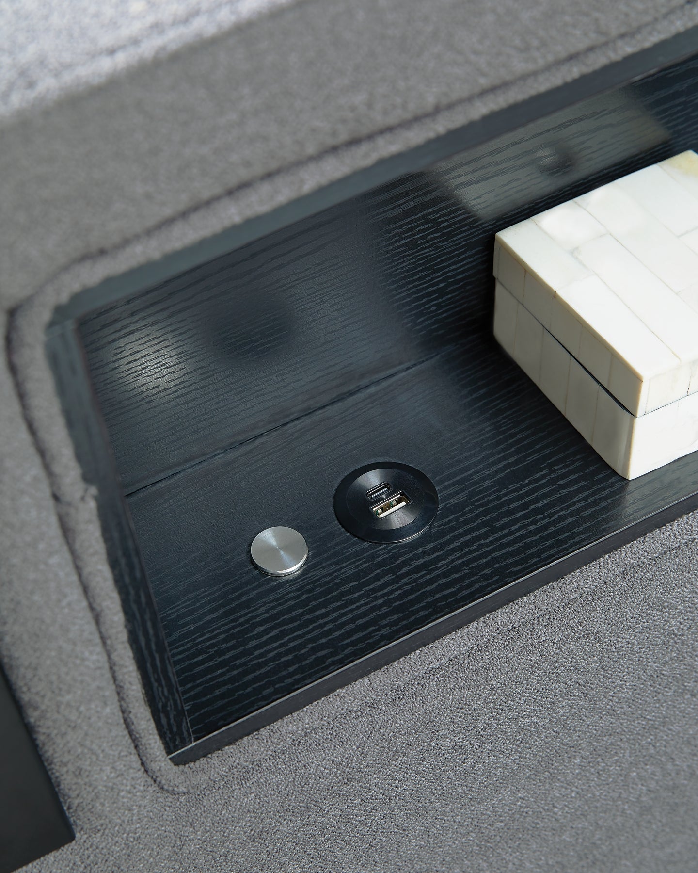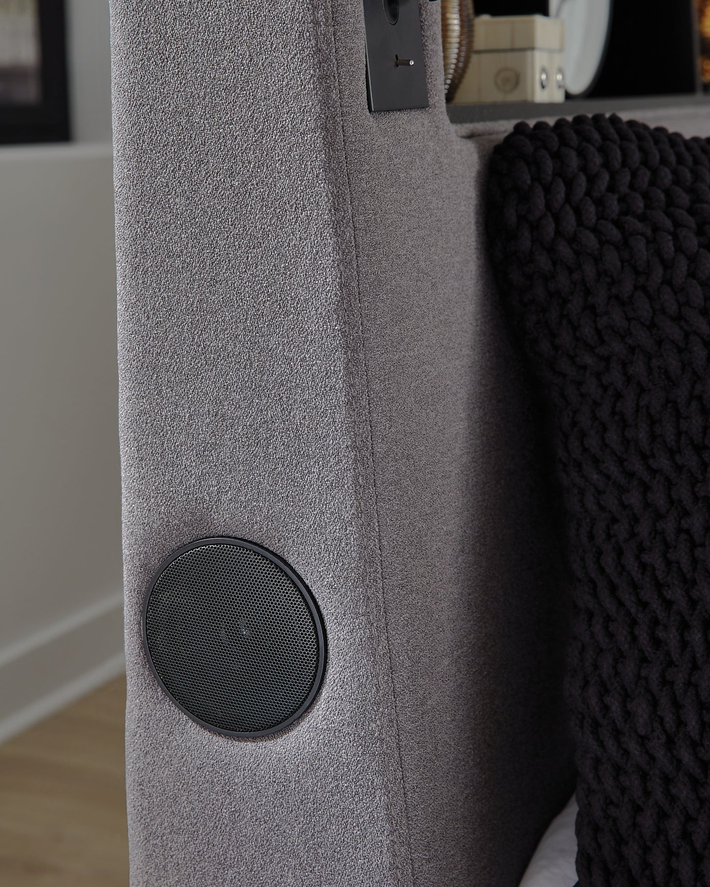 | Detalles | Incluye cabecera tapizada, pie de cama, rieles y listones enrollables, Fabricada con marcos de madera de ingeniería, componentes de madera maciza y espuma, Tapizada de poliéster, Iluminación LED ambiental multicolor en la cabecera y el riel inferior del pie de cama, Luz de lectura LED con brazo articulado a cada lado de la cama, Se requiere base/somier, se vende por separado, Colchón disponible, se vende por separado, Cable de alimentación incluido; Listado por UL, Requiere ensamblaje | |