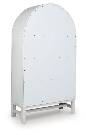 | Details | Made with hardwood solids, mango wood veneer, MDF substrate and metal, Antiqued white finish, Dark pewter-tone knobs, 2 glass-front doors with black metal frames, 3 fixed shelves, Assembly required | |